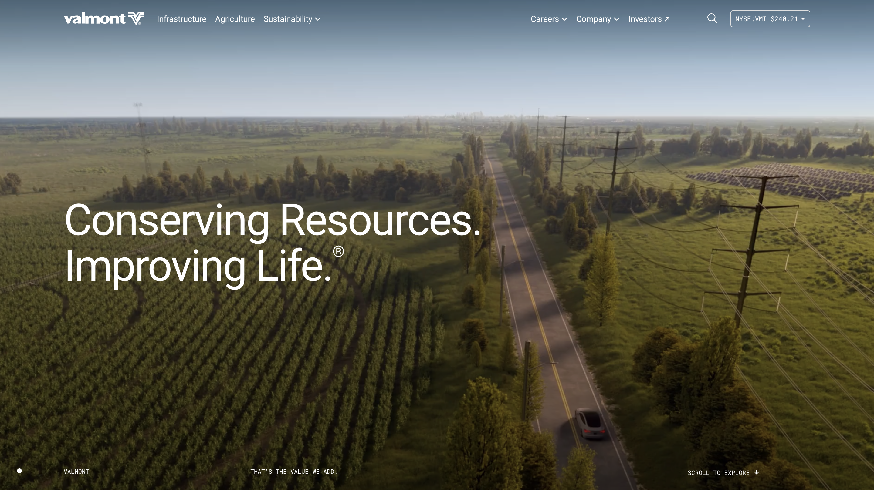 Valmont is an industrial Machinery Manufacturing company. Their website incorporates many cool motion elements that are worth checking out!