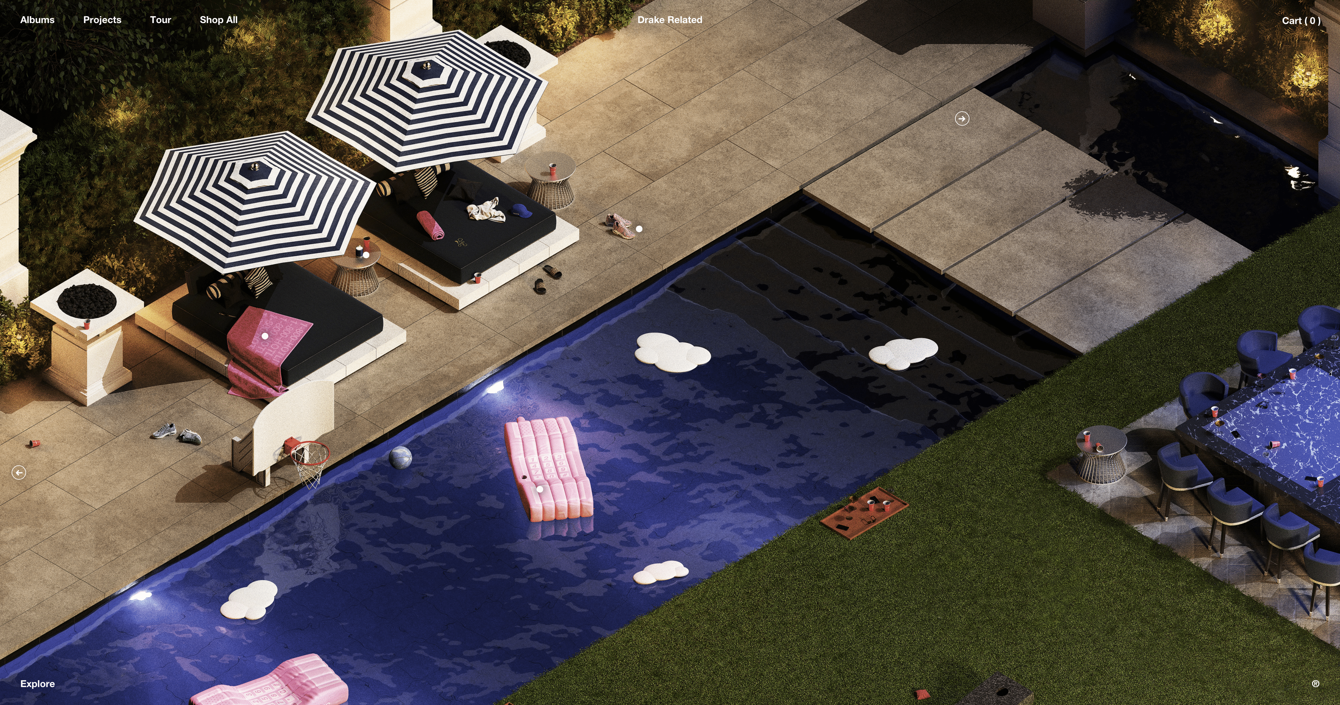 Drake recently revamped his online store, and it's a pretty immersive experience. Fun to explore his house while exploring (incredibly overpriced) products.